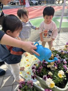 手に土が付くのを気にするお友だちもいましたが、初めてのお花の植え替えを楽しみました。